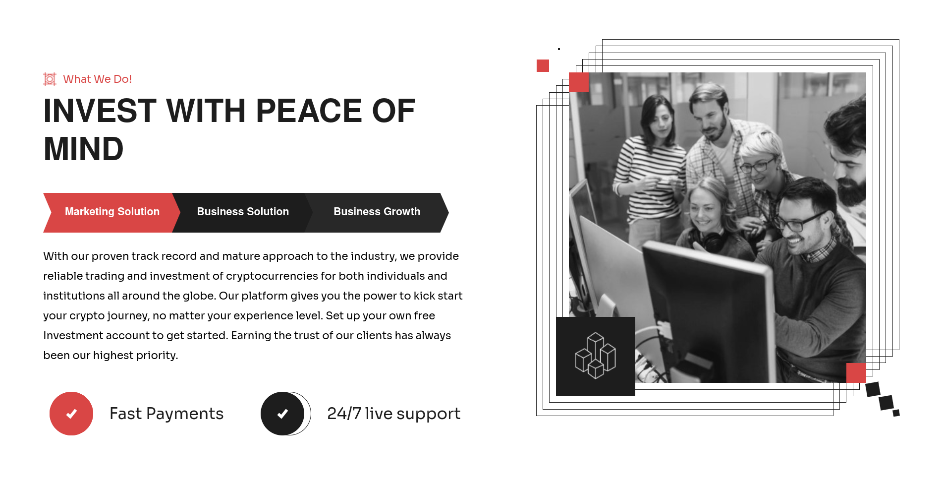 Our company provides crypto mining and trading solutions, we create an accessible, user-friendly and efficient environment for crypto traders and investors all over the world. In order to yield the best possible return for you. Our company is highly trusted, we assist tons of individuals and crypto brokers across the globe to safely invest and earn more with crypto currency.