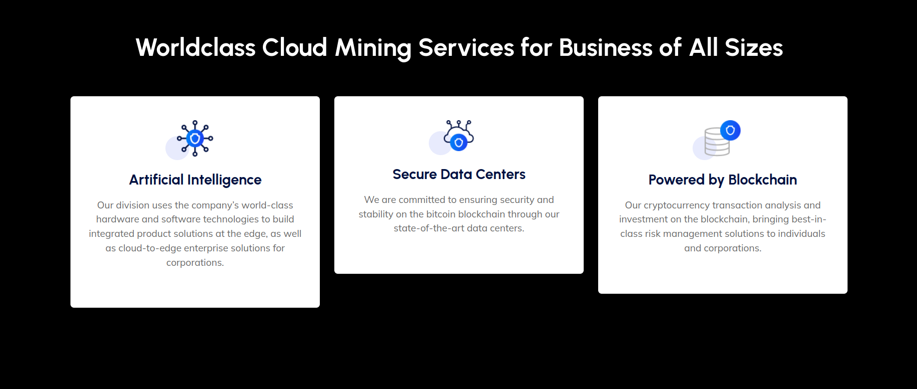 Our cloud minng solutions integrate our world-class hardware and software technologies for world class investment solutions.